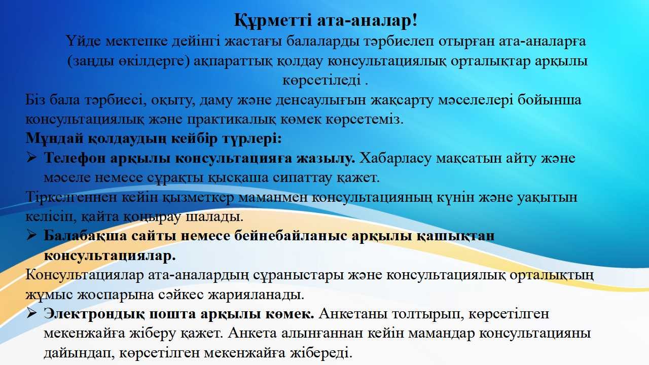 Мектеп жасына дейінгі балаларды үйде тәрбиелеп отырған ата-аналарға (заңды өкілдерге) ақпараттық қолдау көрсету
